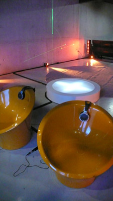 Dans les caves, nous avons réalisé avec l'aide de nos microphones et capteurs une empreinte sonore de la cave Pommery. Cette empreinte a ensuite été traduite en informations numériques afin de réintroduire les réverbérations naturelles de la cave d'origine dans d'autres sons d'importation extérieure. Ce procédé, appelé " convolution ", a été modélisé par la société Parisson et en particulier l'ingénieur acousticien Guillaume Pellerin qui a développé pour nous un logiciel adapté. De cette technique électro-acoustique de pointe est née une forme de détournement, une invitation au voyage.